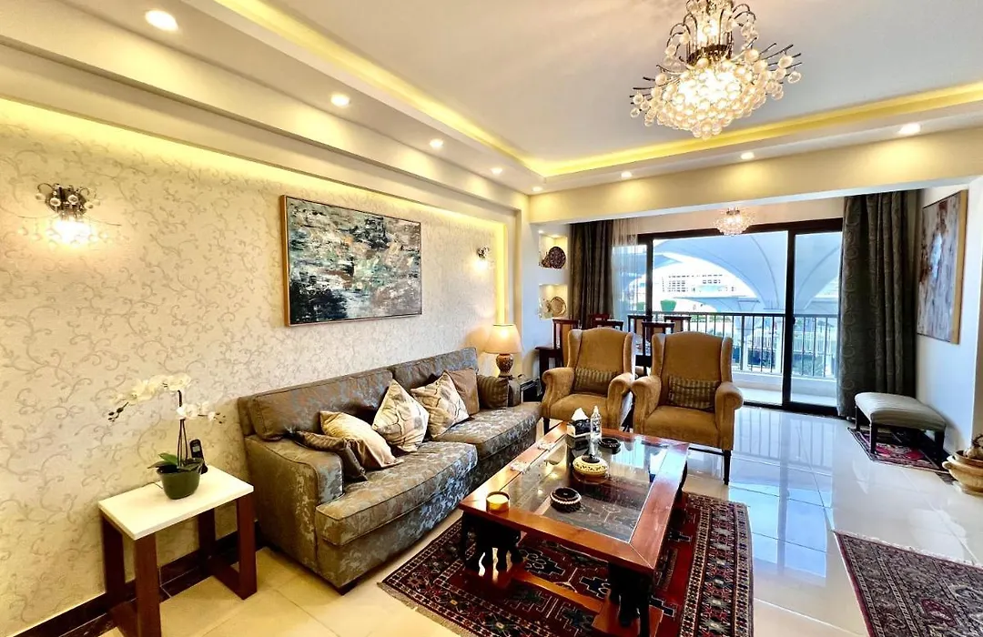 Situado en El Cairo, el Luxury Hotel Apartment With Pools In Front Auc El El Cairo está a tan solo 12 minutos a pie de Meeting Point Mall, ofreciendo a sus huéspedes un jacuzzi y una sauna. Los huéspedes pueden relajarse en la terraza de este apartamento, que se encuentra justo al lado del Gravity Code.